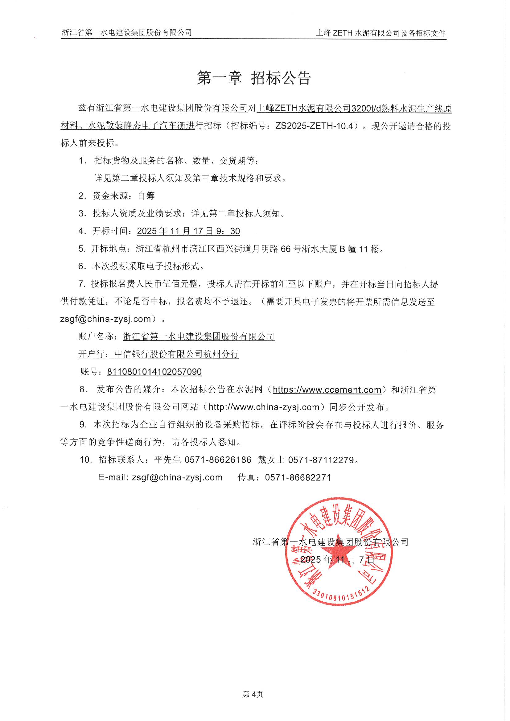 上峰ZETH水泥有限公司3200t/d熟料水泥生產(chǎn)線原材料、水泥散裝靜態(tài)電子汽車衡招標公告