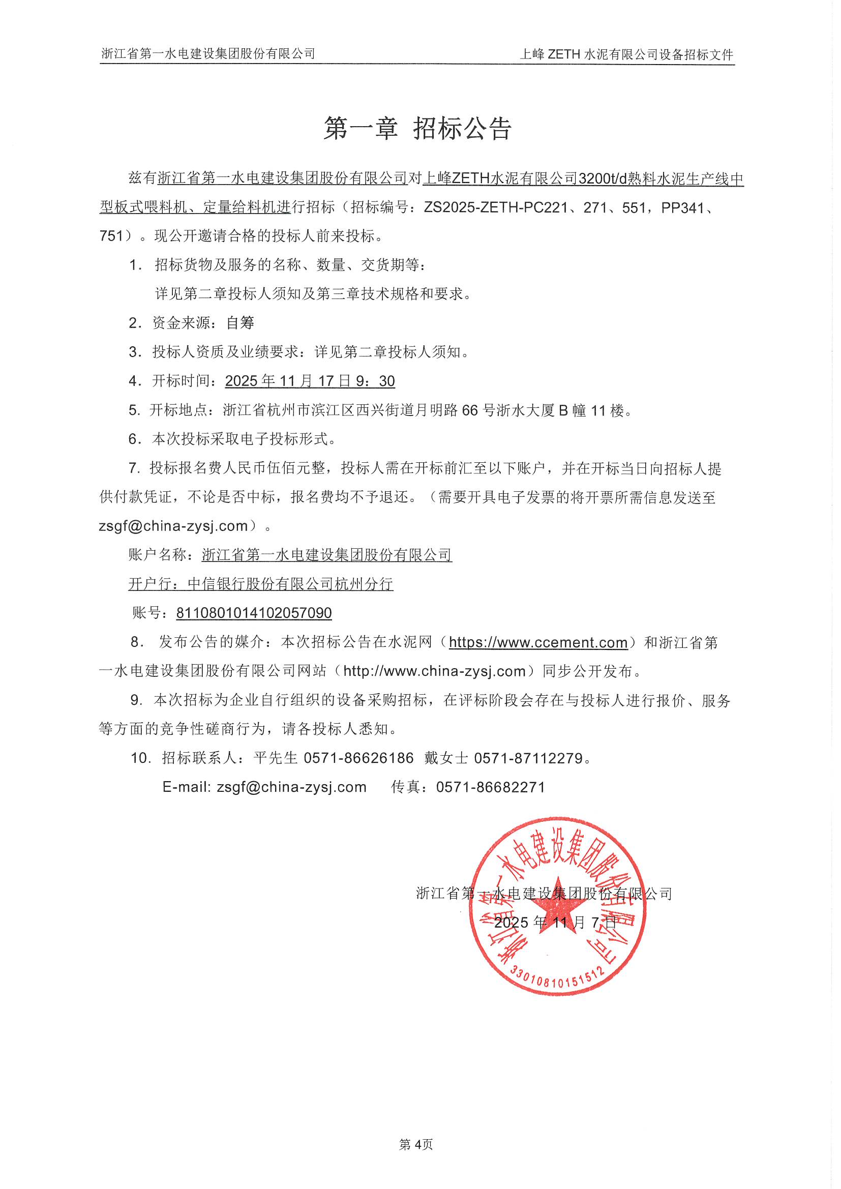 上峰ZETH水泥有限公司3200t/d熟料水泥生產(chǎn)線中型板式喂料機、定量給料機招標公告